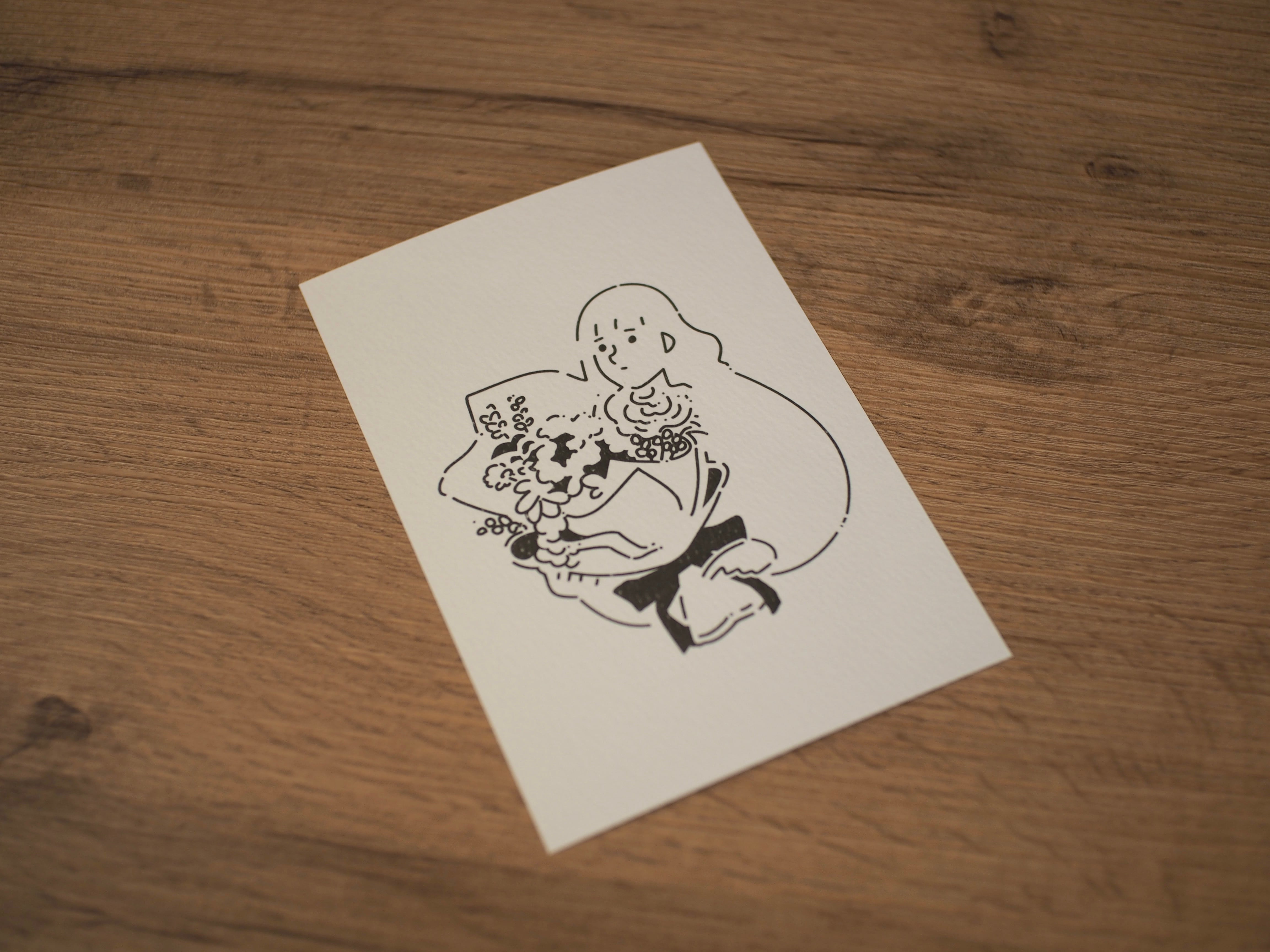 イラストレーターのShunさんが「本屋ブーケ」をイメージして描いたイラストをポストカードにしました。